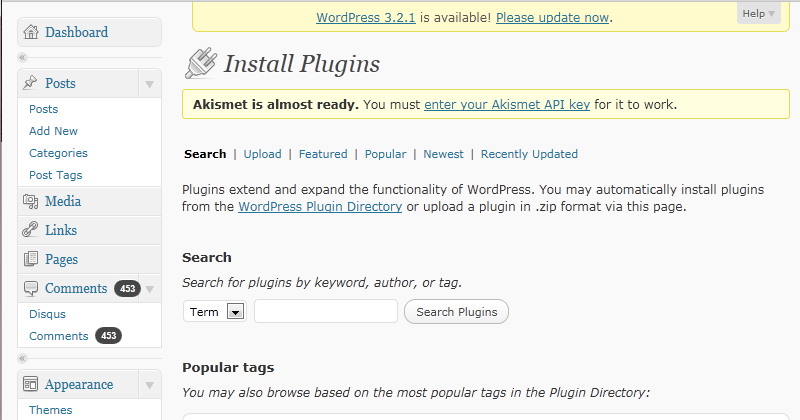 - Go to the “Plugins->Add New” in the menu on the left.