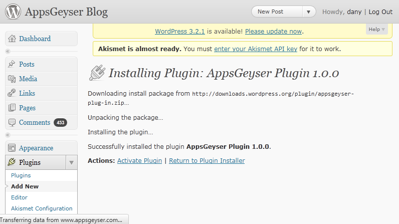 After you click on Activate Plugin, you can then navigate to the AppsGeyser plugin.
