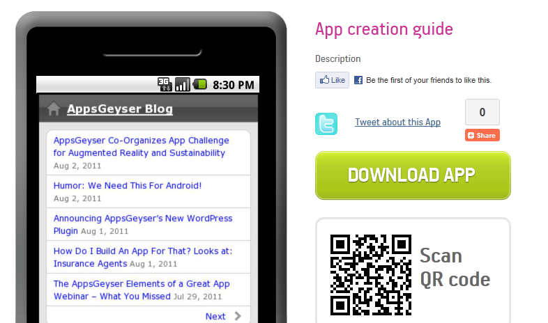 That’s it! Now you have your own app. Please don’t forget to log in to your AppsGeyser.com Dashboard and distribute your app to the Android Market. That’s where people look for apps!