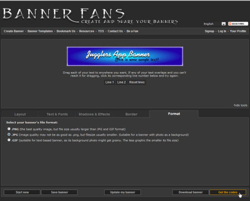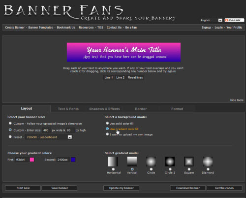 - Layout: Custom! Enter Size: 480px wide by 80px high. (Note: To see banner changes, you have to click ‘Update my banner.’)
