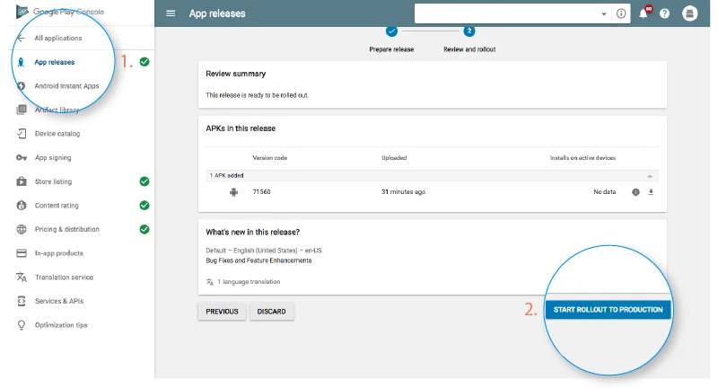 Before you release your app to the world, you need to review your app to make sure everything works. After uploading your APK files, your app will be revised by Google. Google can take up to 7 days to review and publish your app to the Google Play store.