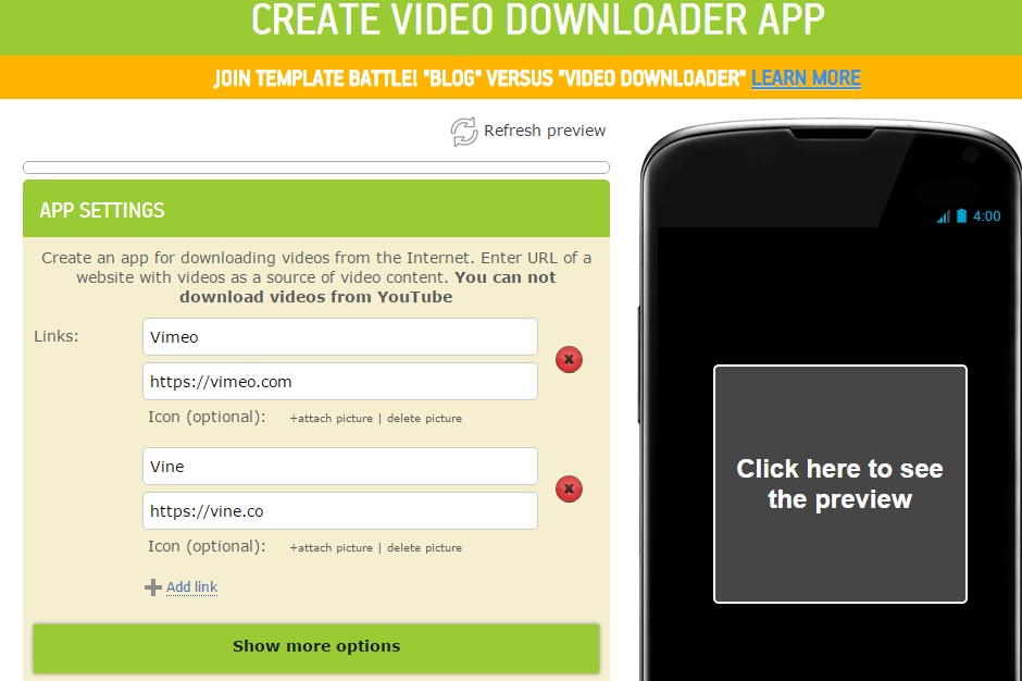 So you have a website, or Vimeo channel, with videos of your product on it. Have you ever thought that maybe people will need to view these videos in an environment where they have no Internet? This is where this template becomes useful. Think about it. You have added a video with instructions on how to put together product x. The user wants to watch the video and the Internet just keeps freezing – annoying right? So give them an app that will allow them to download the video. Perfect.